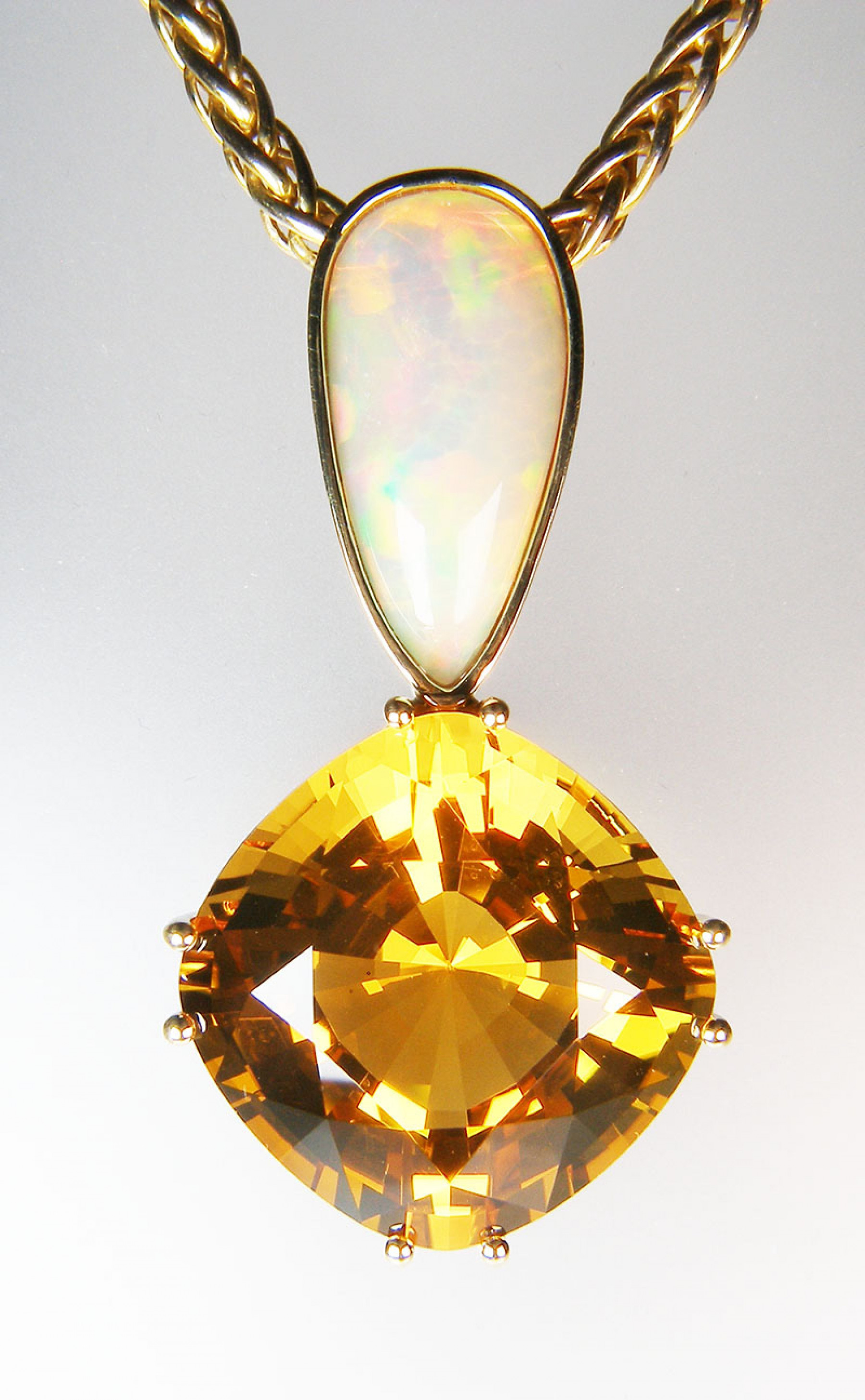 Citrine & Ethiopian opal pendant in 18ct yellow gold