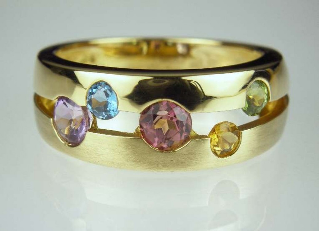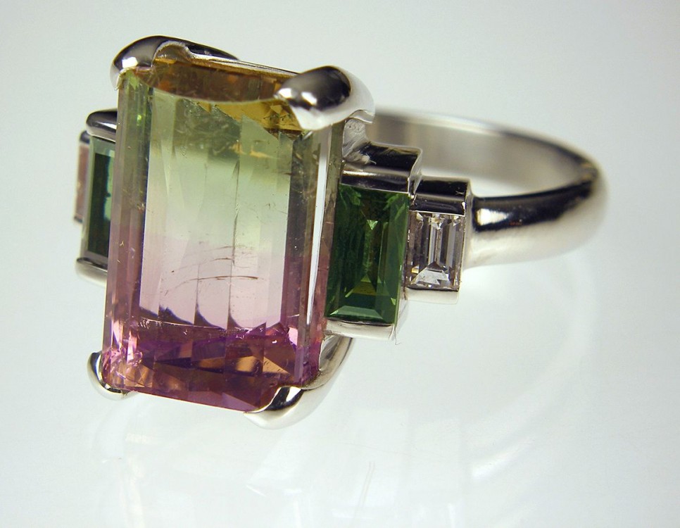 Opal, peridot, pearl & diamond birthstone ring in palladium
