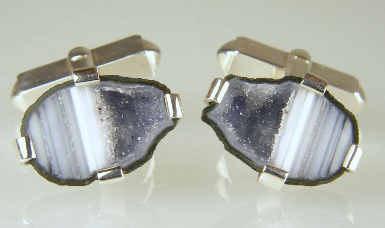 Cufflinks of natural doubly terminated quartz crystals with hydrocarbon inclusions, from Baluchistan, mounted in 9 carat white gold. Available in a range of sizes.