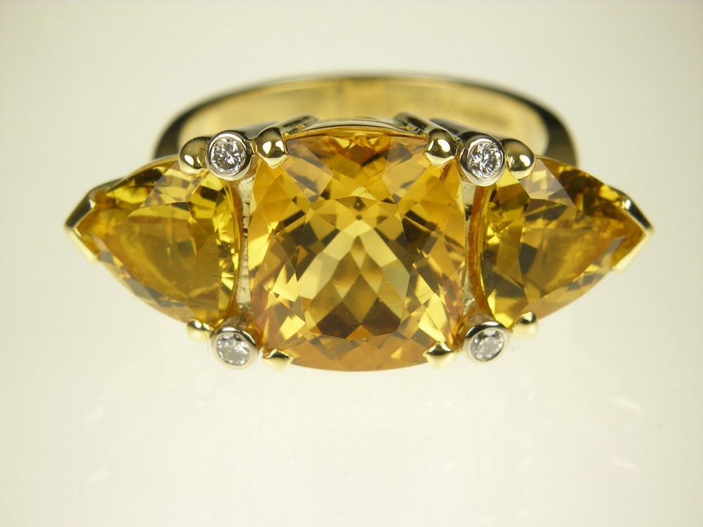 Golden Beryl & Diamond Ring. Ring of 4.17ct oval golden beryl set with 0.35ct diamonds in 18 carat white gold. Central stone 10 x 12mm.