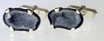 Mexican miniature agate geode cufflinks in silver.