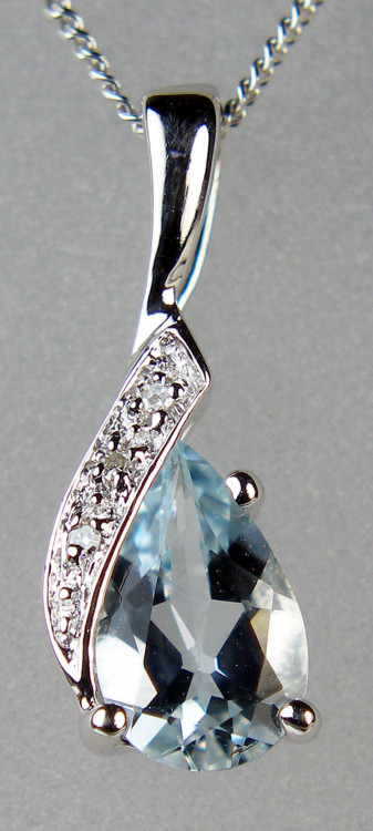 Beautiful unusual quartz with molybdenite inclusions set with a drop shaped faceted iolite and mounted in rhodium and ruthenium plated 9ct white gold as an exquisite pendant