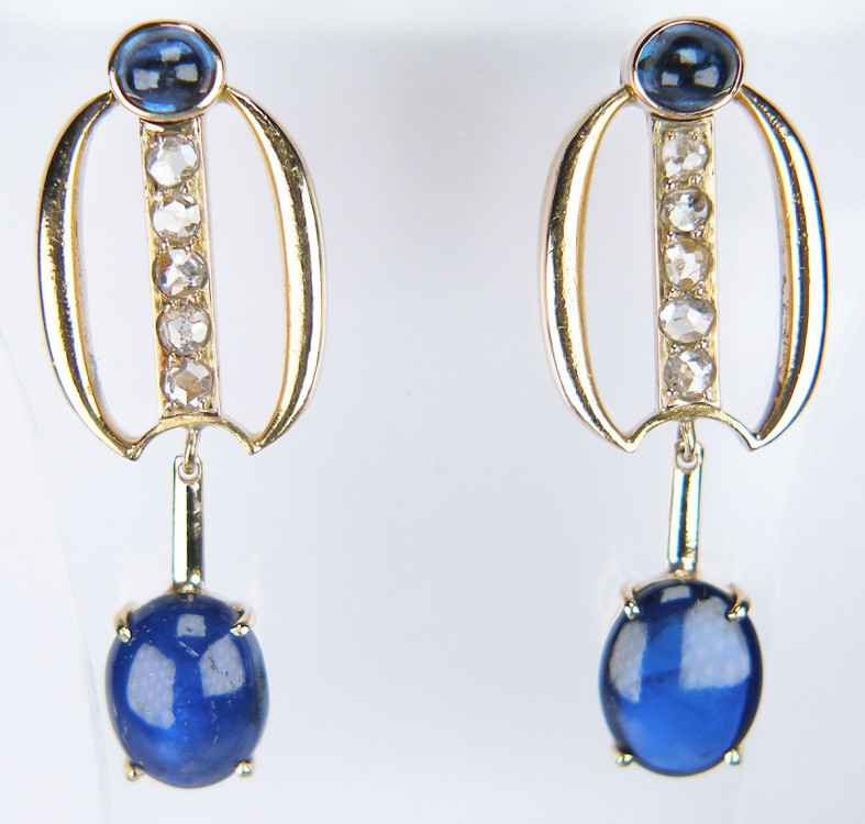 Vintage sapphire & diamond eardrops in 14ct yellow gold // £ 2,150