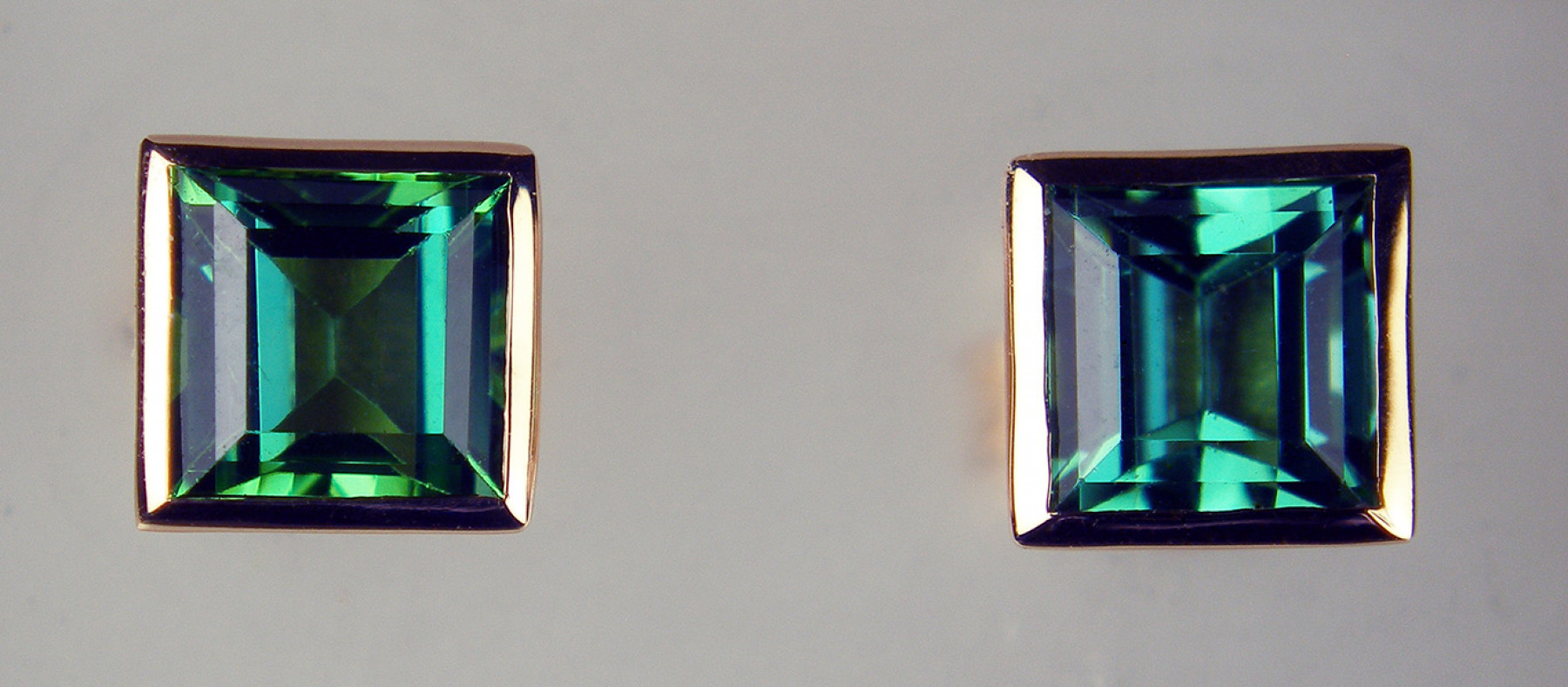 Sea Green colour tourmaline square cut stud earrings in 18ct rose gold