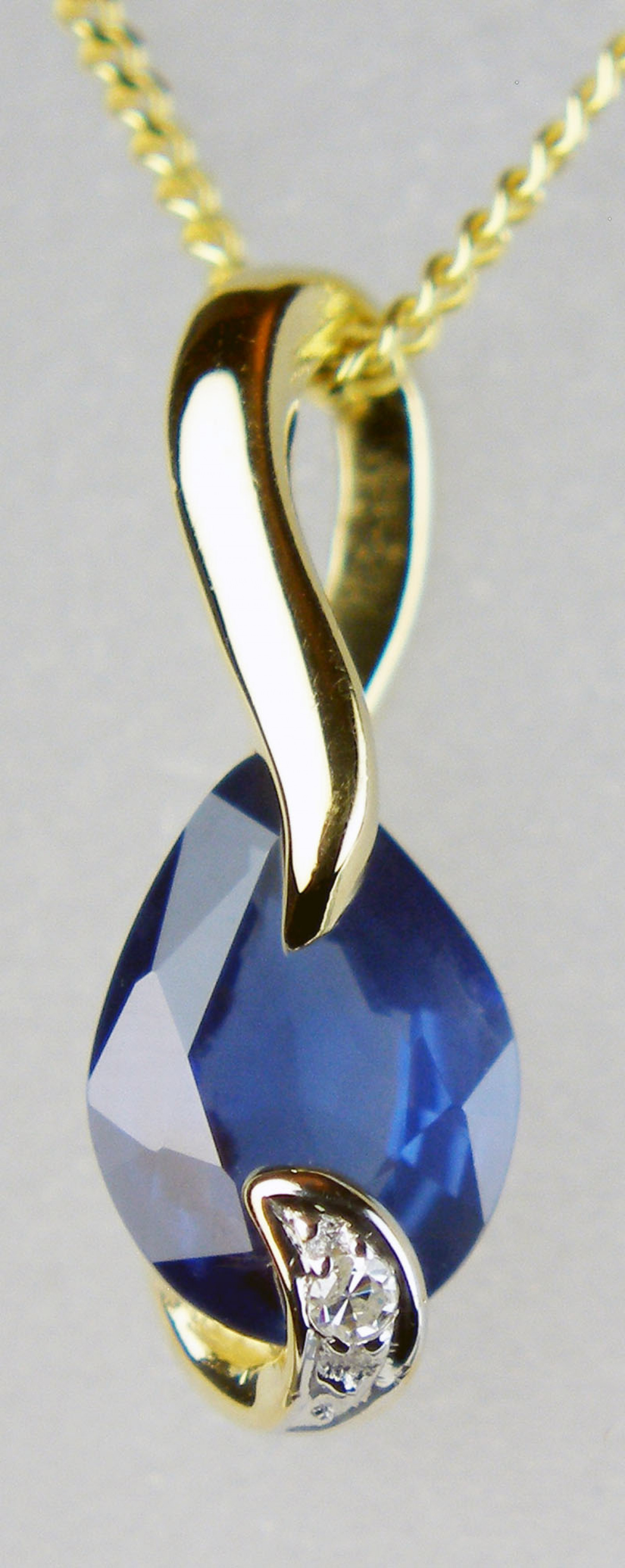 Sapphire & diamond pendant in 9ct yellow gold