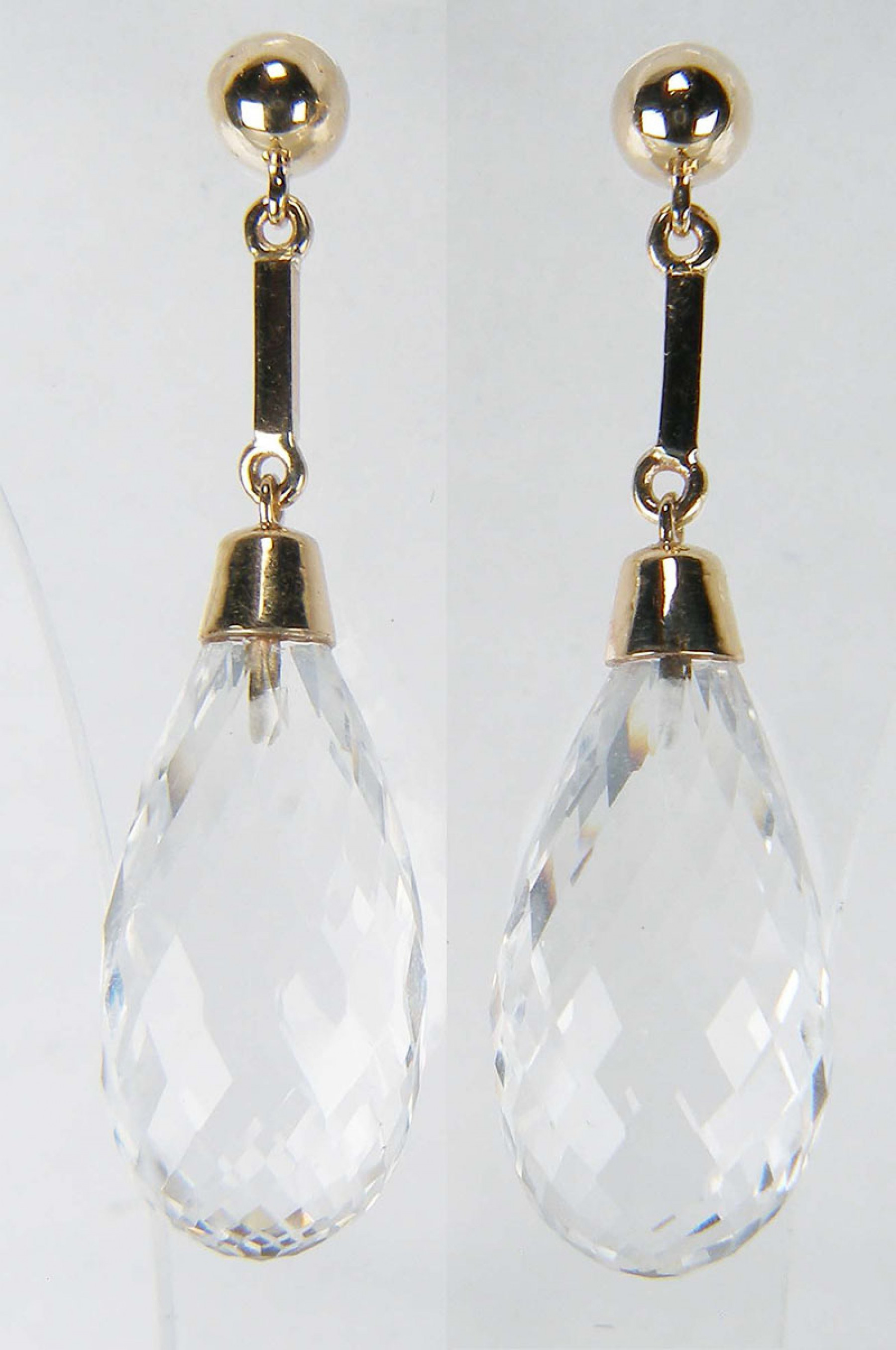 Pretty facetted quartz briolette eardrops in 9ct yellow gold